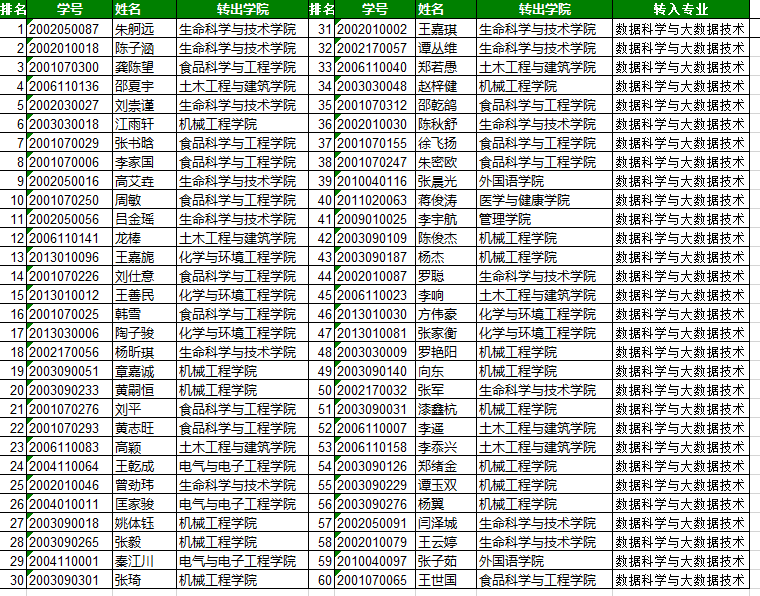 2021年73882必赢欢迎光临申请转数据科学与大数据技术专业拟录取名单公示
