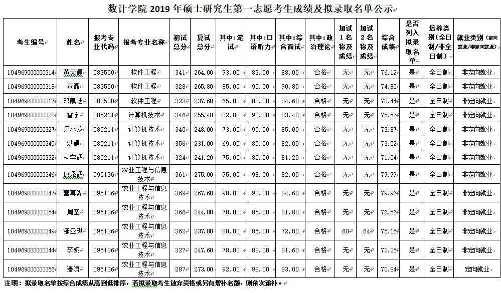 2019年研究生第一志愿考生成绩及拟录取名单公示