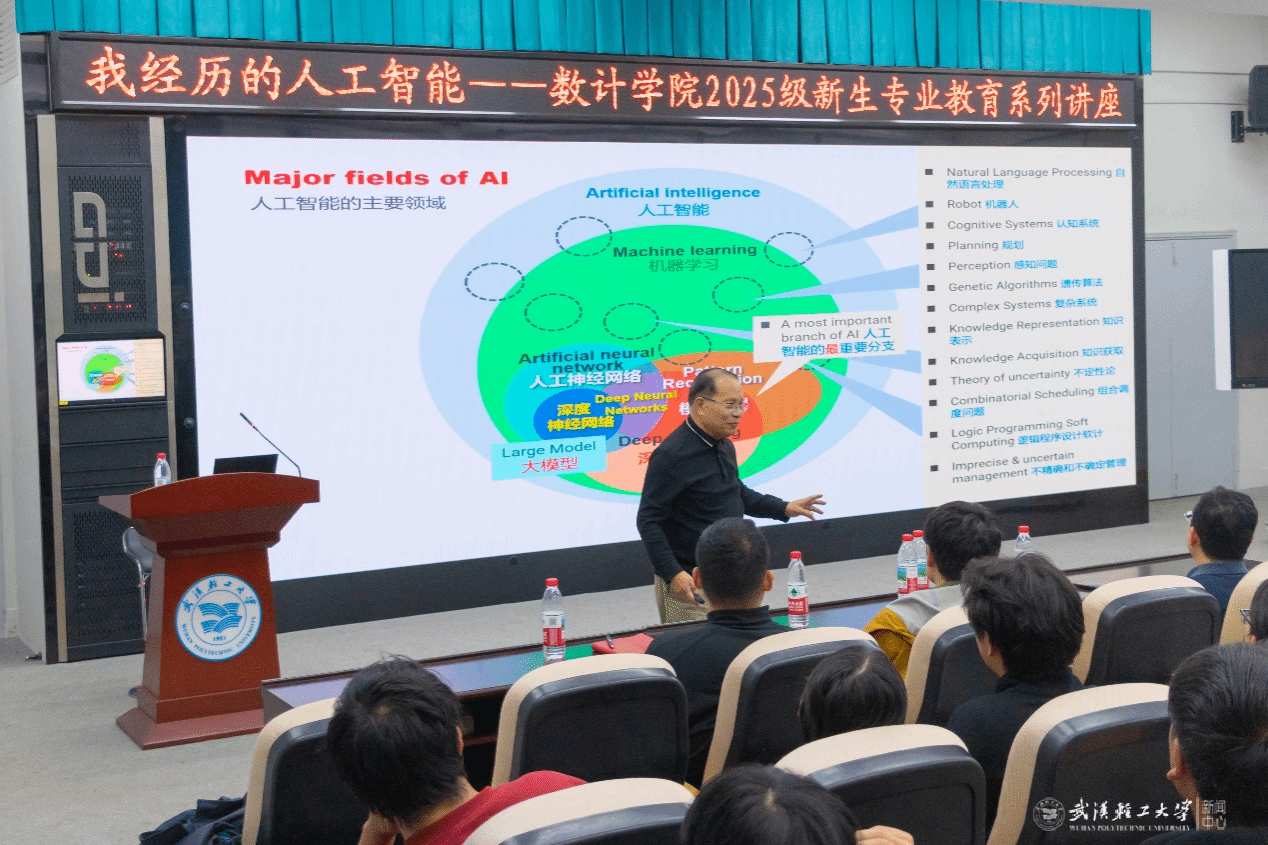 11月6日晚,73882必赢欢迎光临在常青校区积学楼209教室成功举办“我经历的人工智能——2025级新生专业教育系列讲座”。本次讲座特邀人工智能领域知名专家唐远炎教授担任主讲嘉宾,为初入大学校园的同学们带来了一场内容丰富、见解独到的学术盛宴。校党委常委、副校长曾山出席活动。活动由学院副院长李雅琴主持,2025级人工智能、信息与计算科学专业全体同学现场聆听。